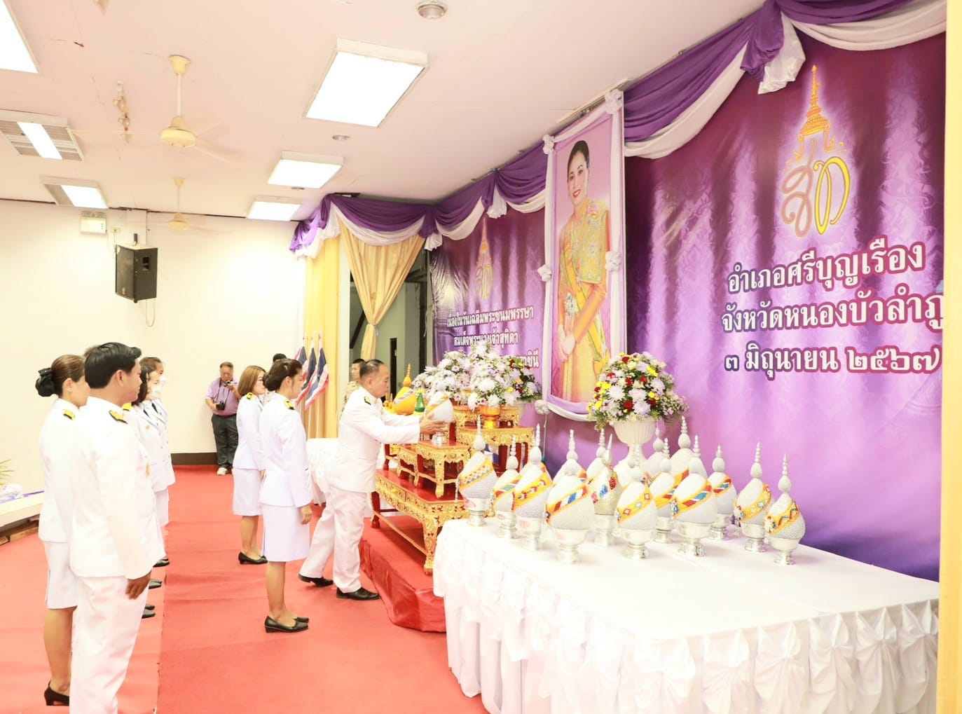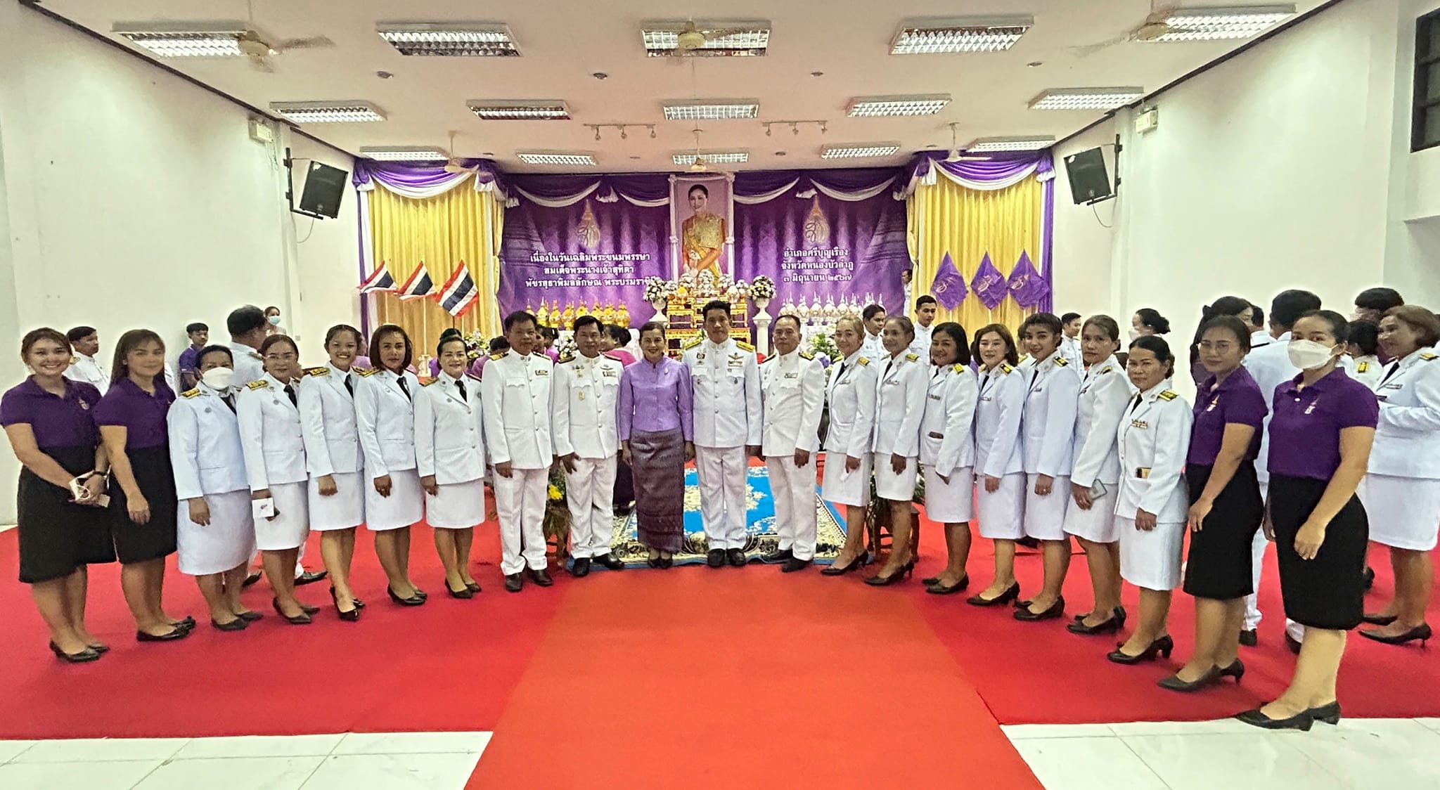 | เนื้อหากิจกรรมโดยย่อ : | ร่วมพิธีวางพานพุ่มและพิธีจุดเทียนถวายพระพรชัยมงคล เนื่องในวันเฉลิมพระชนมพรรษา สมเด็จพระนางเจ้าสุทิดา พัชรสุธาพิมลลักษณ พระบรมราชินี | ||