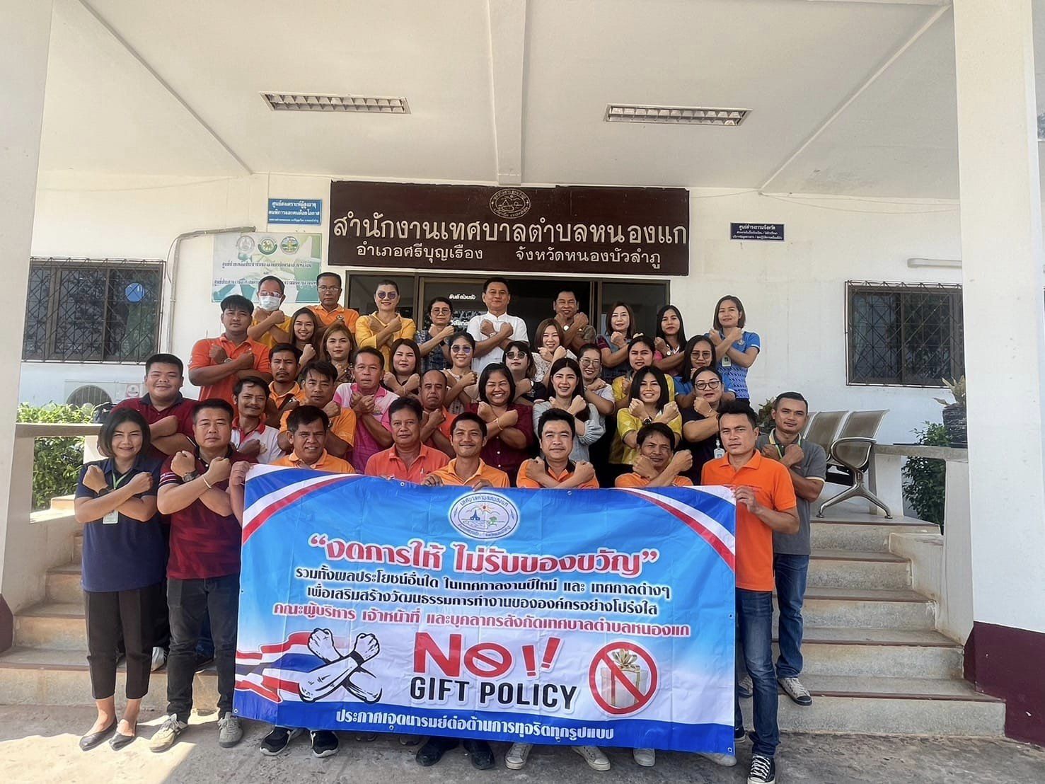 นายประยงค์ เอกตาแสง นายกเทศมนตรีตำบลหนอแก ได้ประกาศเจตนารมณ์นโยบาย No Gift Policy จากการปฏิบัติหน้าที่ ประจำปีงบประมาณ พ.ศ.2567 และได้จัดกิจกรรมประชาสัมพันธ์ให้พนักงานเทศบาลตำบลหนองแก ในการประชุมพนักงาน ณ ห้องประชุมเทศบาลตำบลหนองแก เพื่อให้พนักงานทุกคนร่วมแสดงเจตนารมณ์นโยบาย No Gift Policy จากการปฏิบัติหน้าที่ |