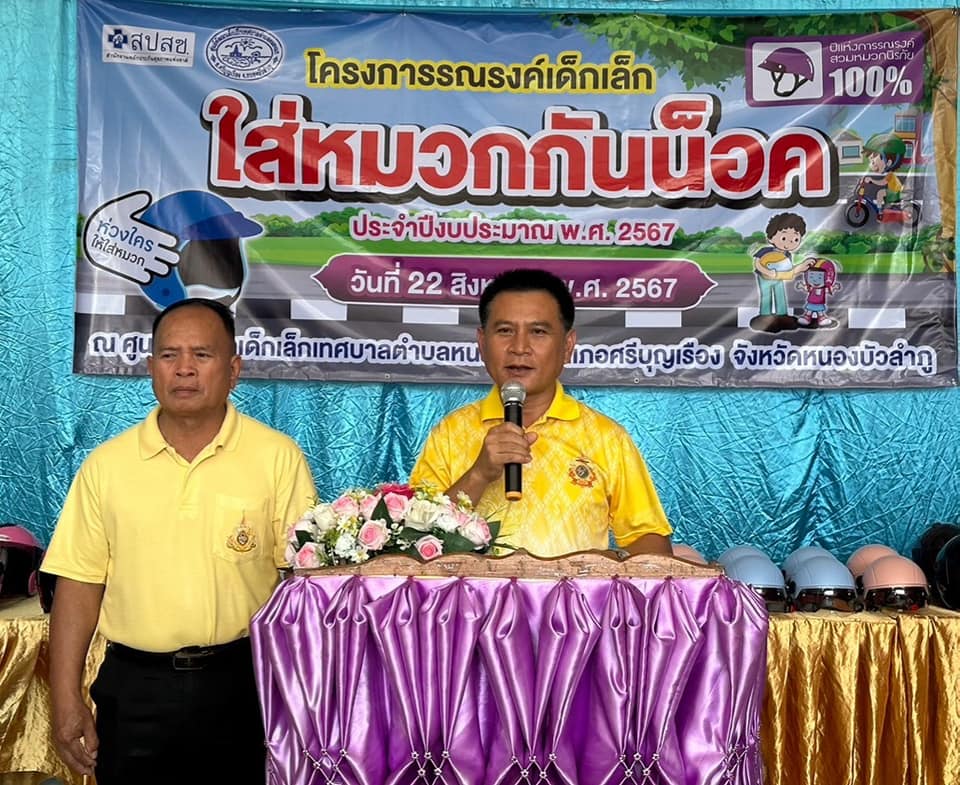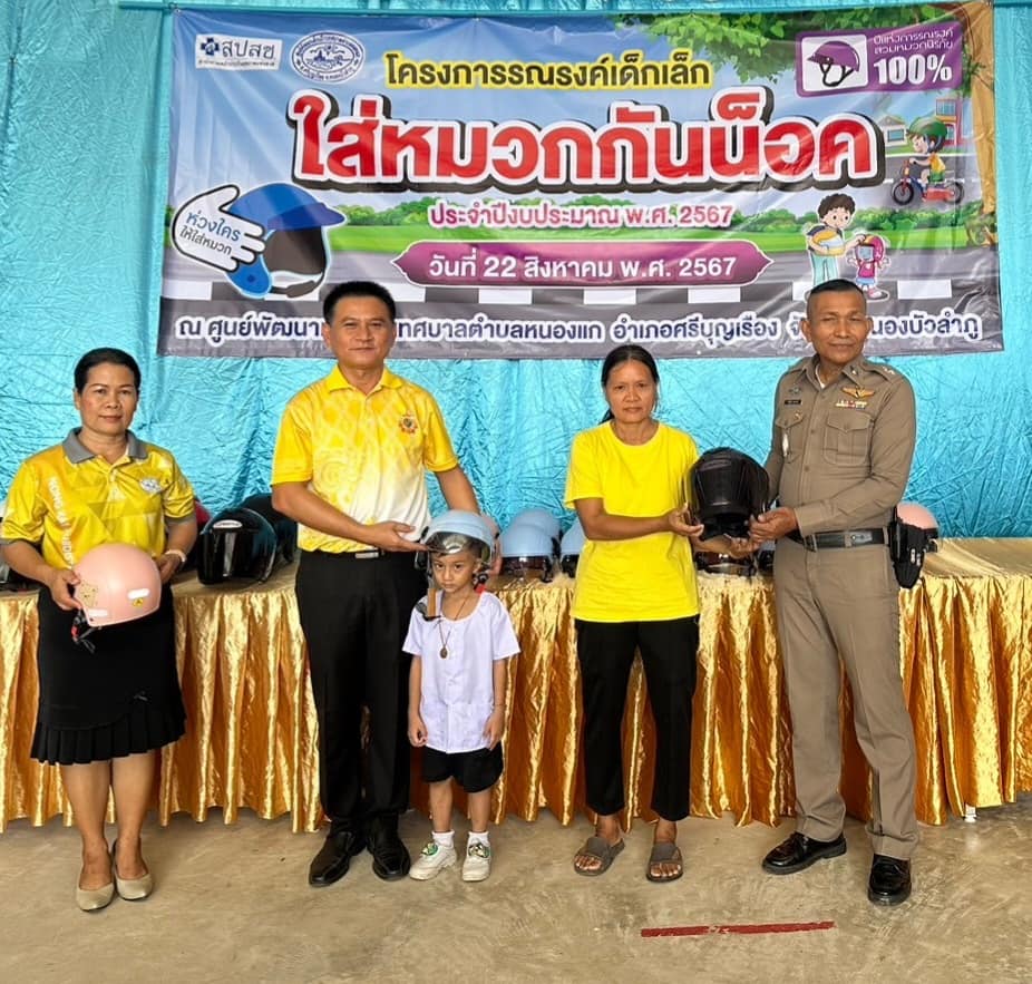 วันที่ 22 สิงหาคม 2567 เวลา 09.00 น. เทศบาลตำบลหนองแก จัดทำโครงการรณรงค์เด็กเล็ก ใส่หมวกกันน็อค ประจำปีงบประมาณ 2567 โดยการนำของ นายประยงค์ เอกตาแสง นายกเทศมนตรีตำบลหนองแก พร้อมคณะผู้บริหาร กรรมการสถานศึกษา ข้าราชการ คณะครูศูนย์พัฒนาเด็กเล็ก ทต.หนองแก เด็กเล็กและ ผู้ปกครอง ในเขตเทศบาลตำบลหนองแก ณ ศูนย์พัฒนาเด็กเล็กเทศบาลตำบลหนองแก
