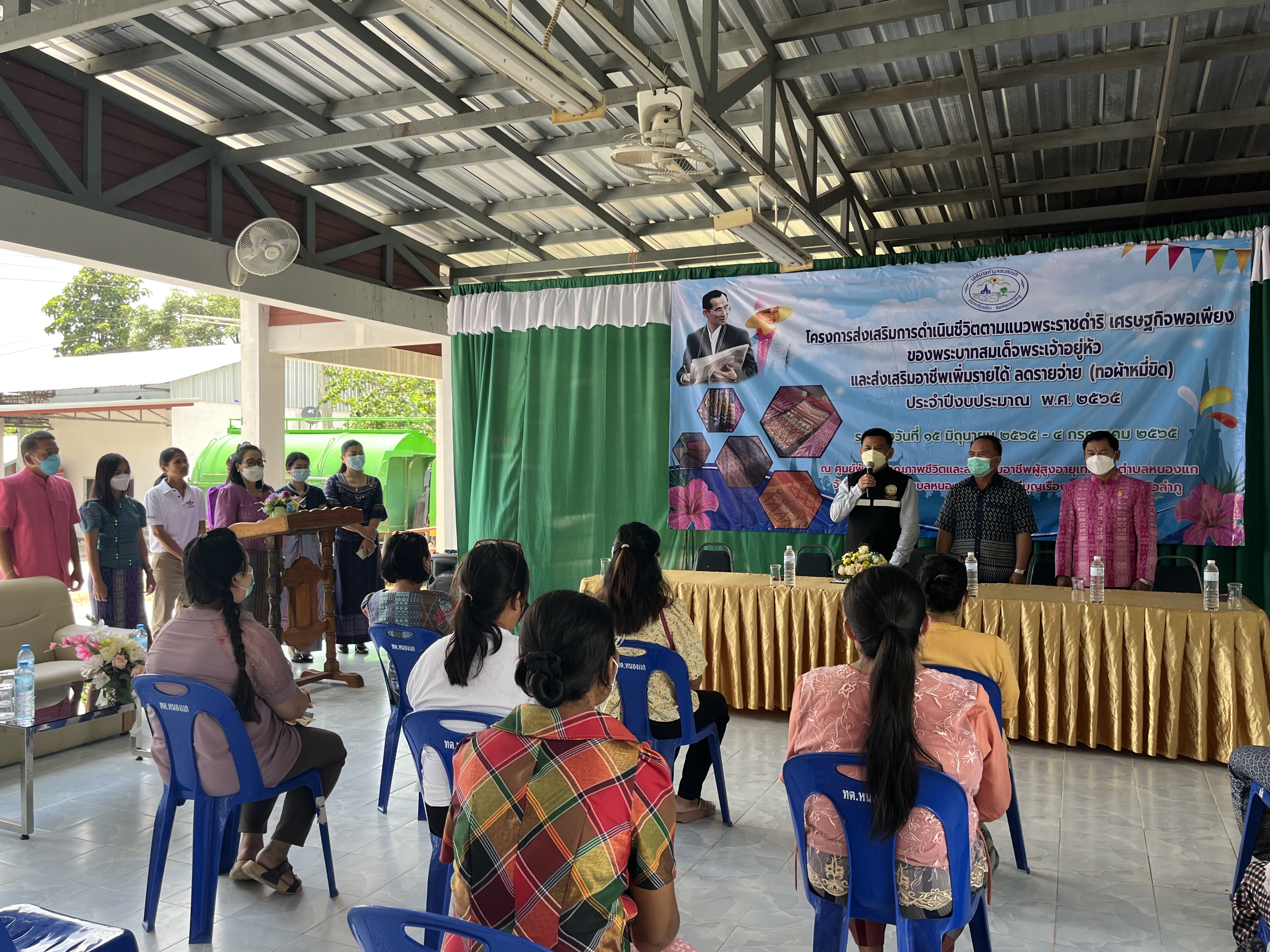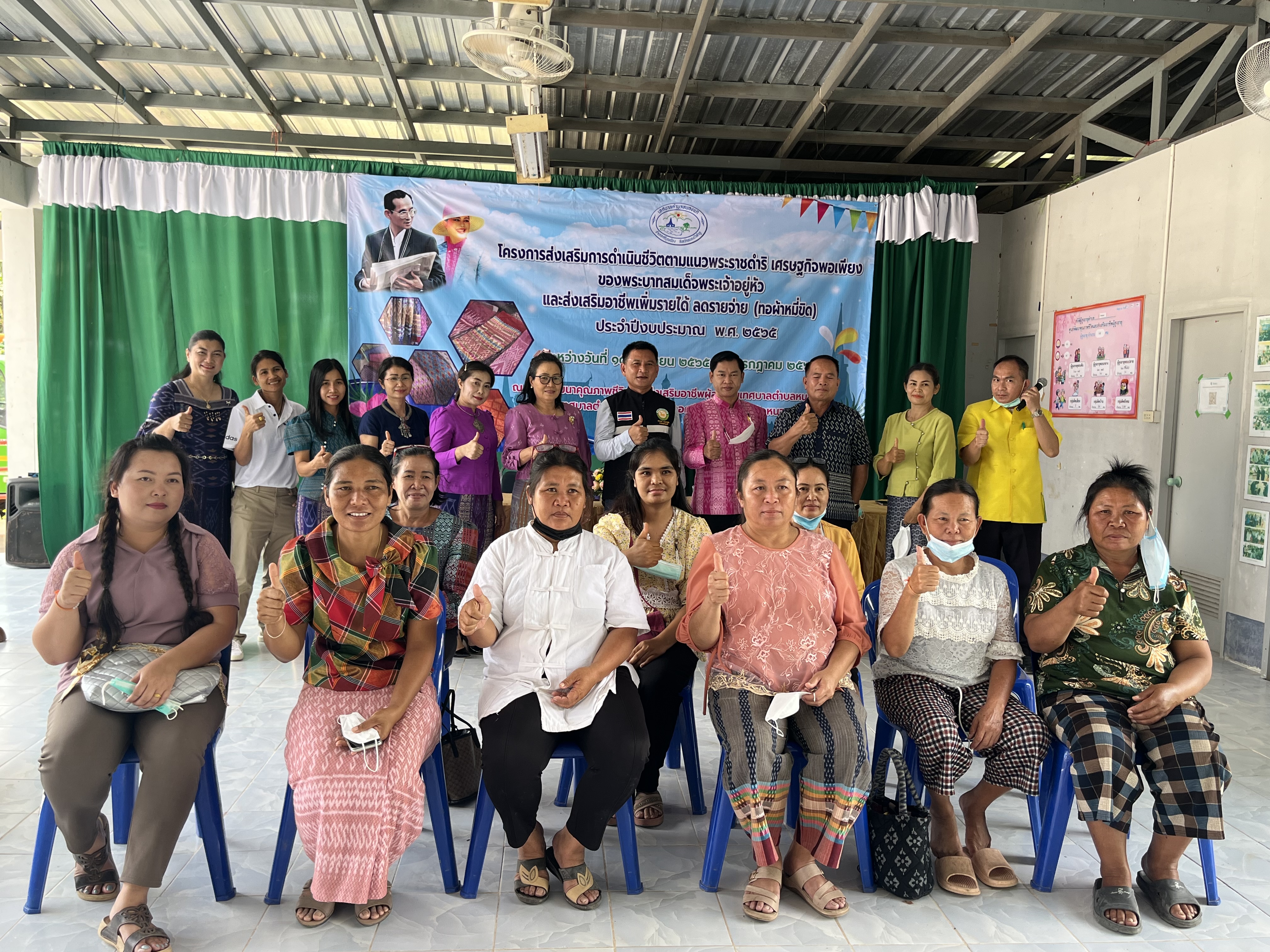 | เนื้อหากิจกรรมโดยย่อ : | อบรมโครงการส่งเสริมการดำเนินชีวิตตามแนวพระราชดำริเศรษฐกิจพอเพียงของพระบาทสมเด็จพระเจ้าอยู่หัว และส่งเสริมอาชีพเพิ่มรายได้ลดรายจ่าย (ทอผ้าหมี่ขิด) | ||