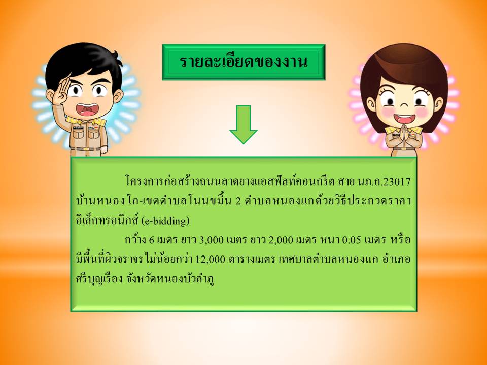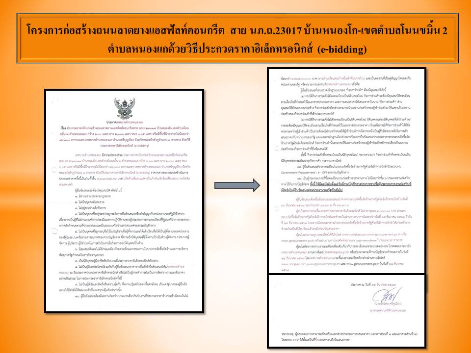 | เนื้อหา : | เทศบาลตำบลหนองแกขอประกาศ การดำเนินโครงการก่อสร้างถนนลาดยางแอสฟัลท์คอนกรีตสาย นภ.ถ.23017 บ้านหนองโก-เขตตำบลโนนขมิ้น 2 ตำบลหนองแกกว้าง 6 เมตร ยาว 3,000 เมตร ยาว 2,000 เมตร หนา 0.05 เมตร หรือมีพื้นที่ผิวจราจรไม่น้อยกว่า 12,000 ตารางเมตร เทศบาลตำบลหนองแก อำเภอศรีบุญเรือง จังหวัดหนองบัวลำภู (รายละเอียดตามเอกสารแนบ) | ||