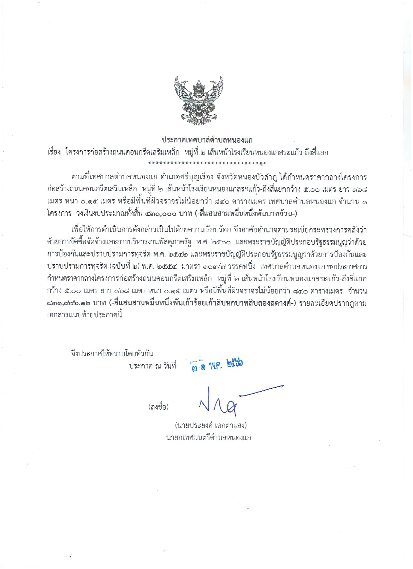 | ผู้ประกาศ : | เทศบาลตำบลหนองแก | ||