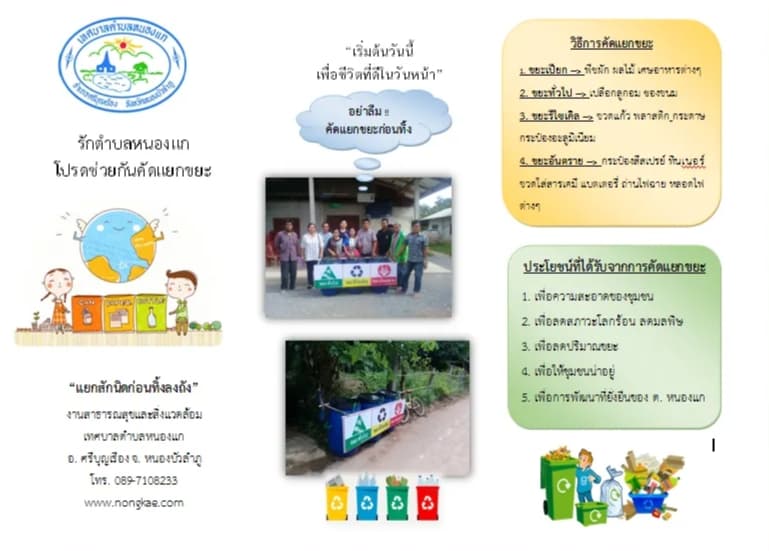 งานสาธารณสุขและสิ่งแวดล้อม ขอประชาสัมพันธ์การคัดแยกขยะตามหลัก 3Rs เพื่อเป็นการช่วยลดโลกร้อน และสร้างความสะอาดแก่ชุมชนตำบลหนองแกของเราให้น่าอยู่