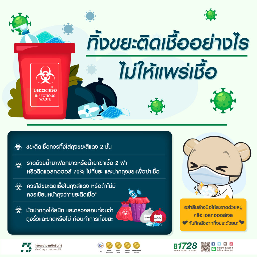 ทิ้งลงถังขยะติดเชื้ิอ ถังขยะที่มีฝาปิด