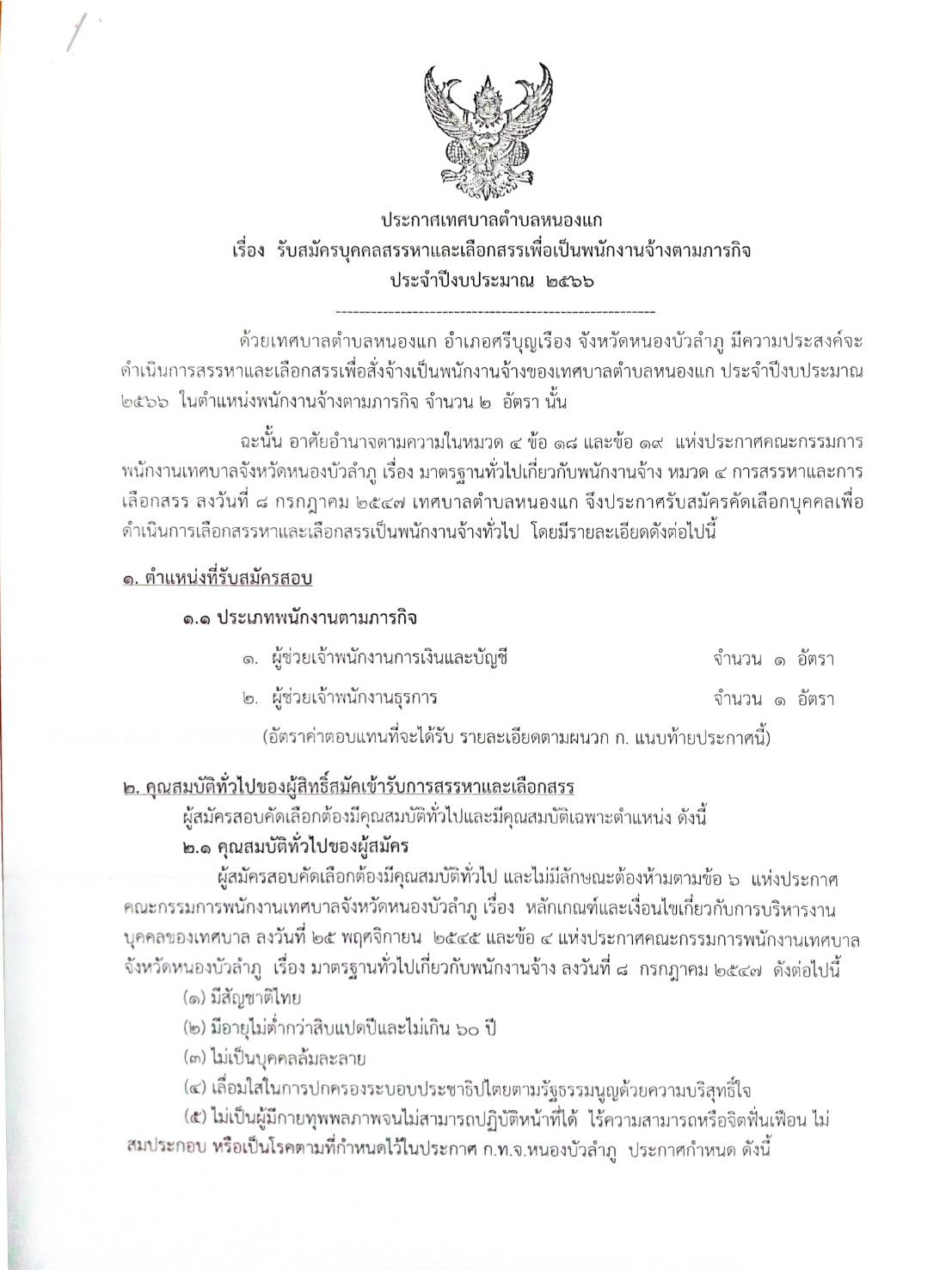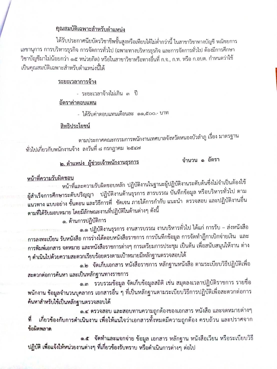 2.ตำแหน่ง เจ้าพนักงานธุรการ จำนวน 1 อัตรา