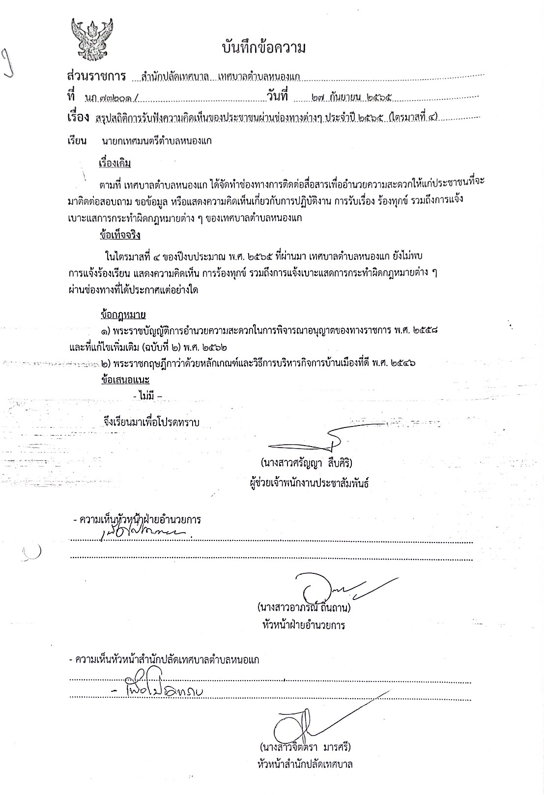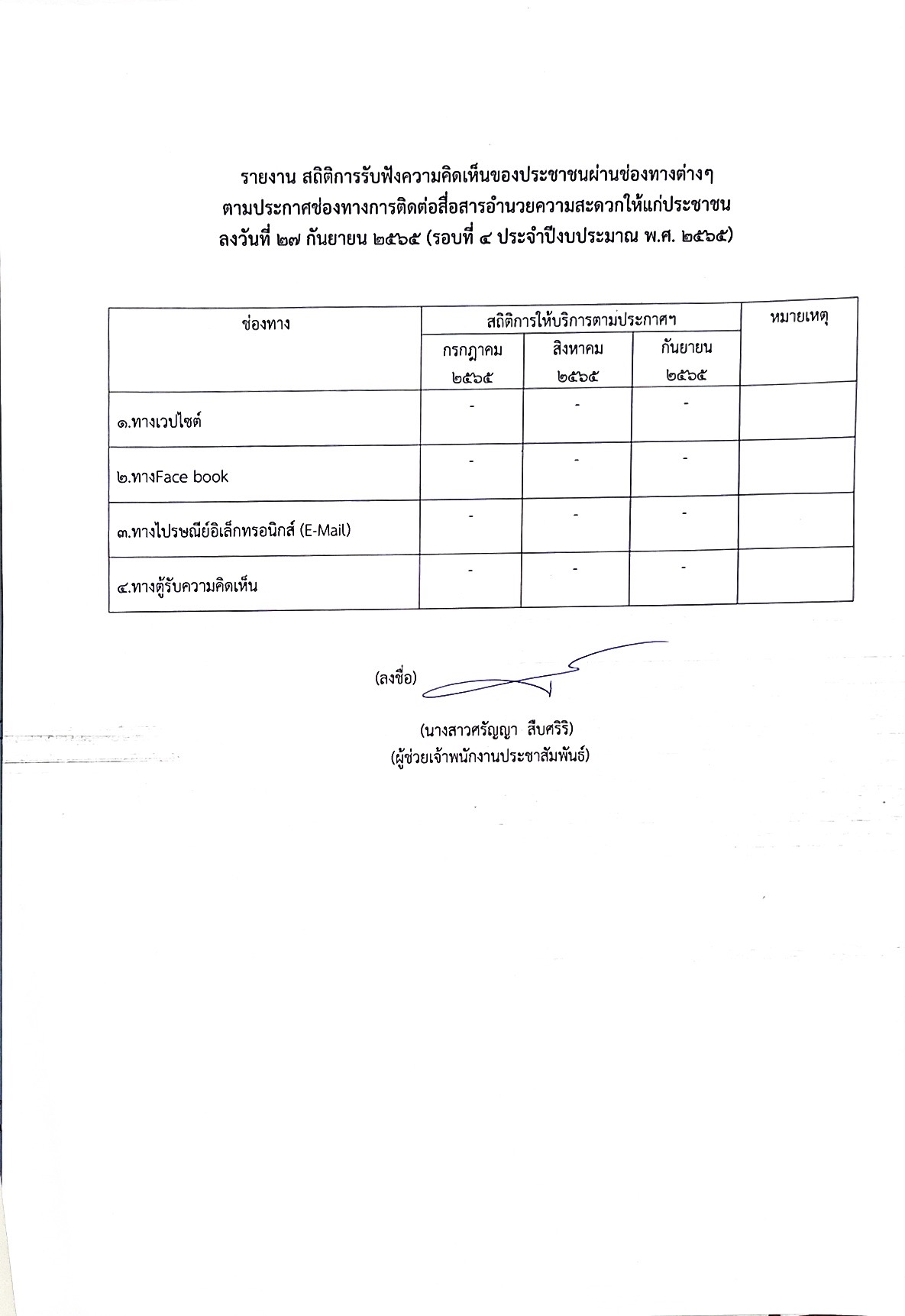 สรุปสถิติการรับฟังความคิดเห็นของประชาชนผ่านช่องทางต่างๆ ประจำปี 2565