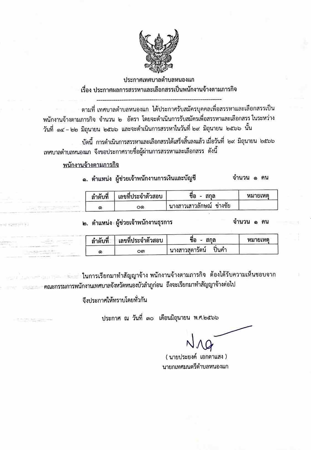 ประกาศรายชื่อผู้ผ่านการสรรหาและเลือกสรร พนักงานจ้างตามภารกิจ