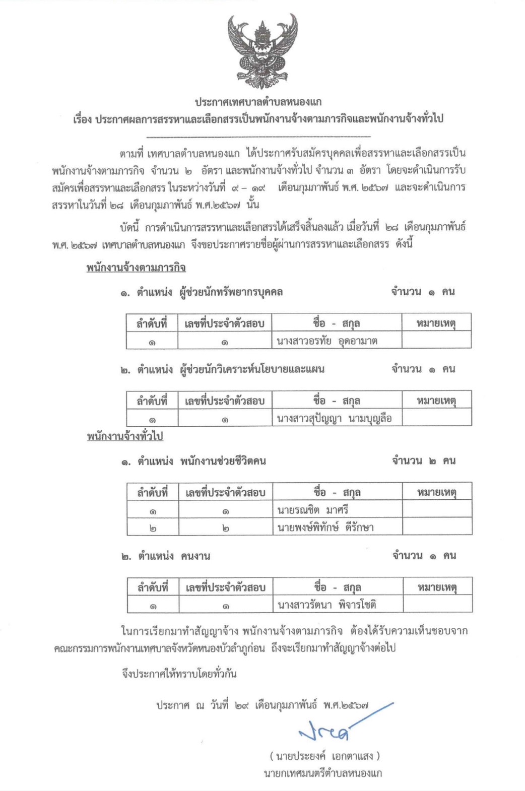 ประกาศผลการสรรหาและเลือกสรรเป็นพนักงานจ้างตามภารกิจและพนักงานจ้างทั่วไป
