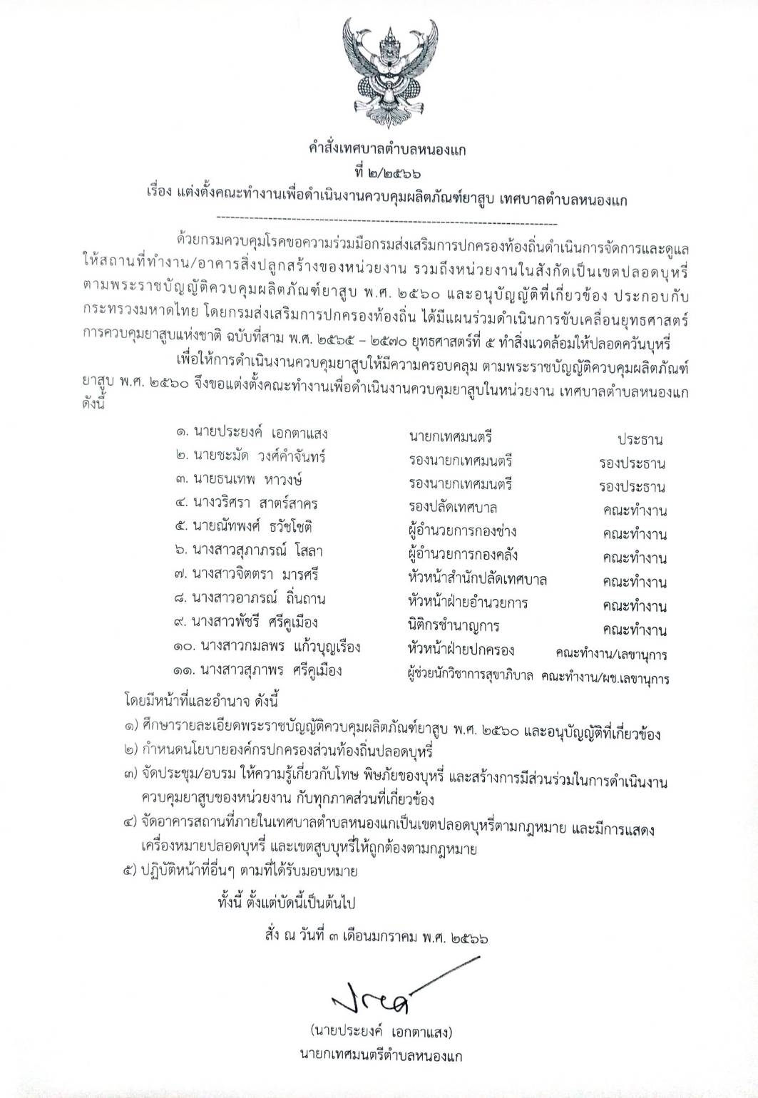 เทศบาลตำบลหนองแก จึงนโยบายเทศบาลตำบลหนองแก ปลอดบุหรี่ ตามพระราชบัญญัติควบคุมผลิตภัณฑ์ยาสูบ พ.ศ. 2560