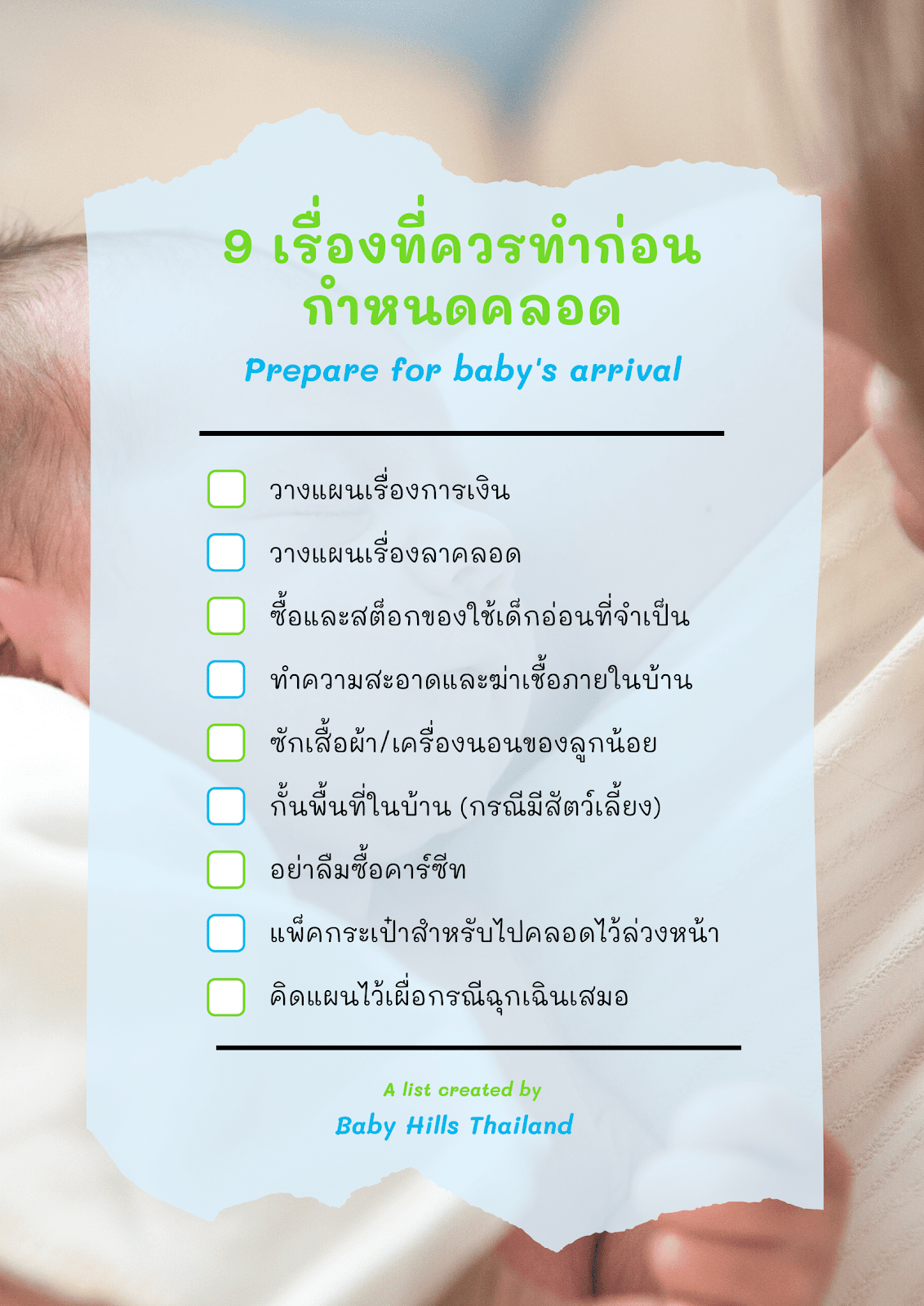 เตรียมตัวก่อนคลอด ย่อมเป็นการดีที่คุณพ่อและคุณแม่จะได้จัดตระเตรียมการบางอย่างและเตรียมของใช้จำเป็นที่ต้องเตรียมไปโรงพยาบาลในวันคลอด ยิ่งโดยเฉพาะในคุณแม่ท้องแก่ใกล้คลอดนั้น หากได้เตรียมสิ่งที่ต้องใช้ก่อนไปโรงพยาบาลก็จะยิ่งดีมาก ๆ เพราะเมื่อเจ็บท้องคลอดขึ้นมาจริง ๆ จะได้ไม่ฉุกละหุกจนเกินไป