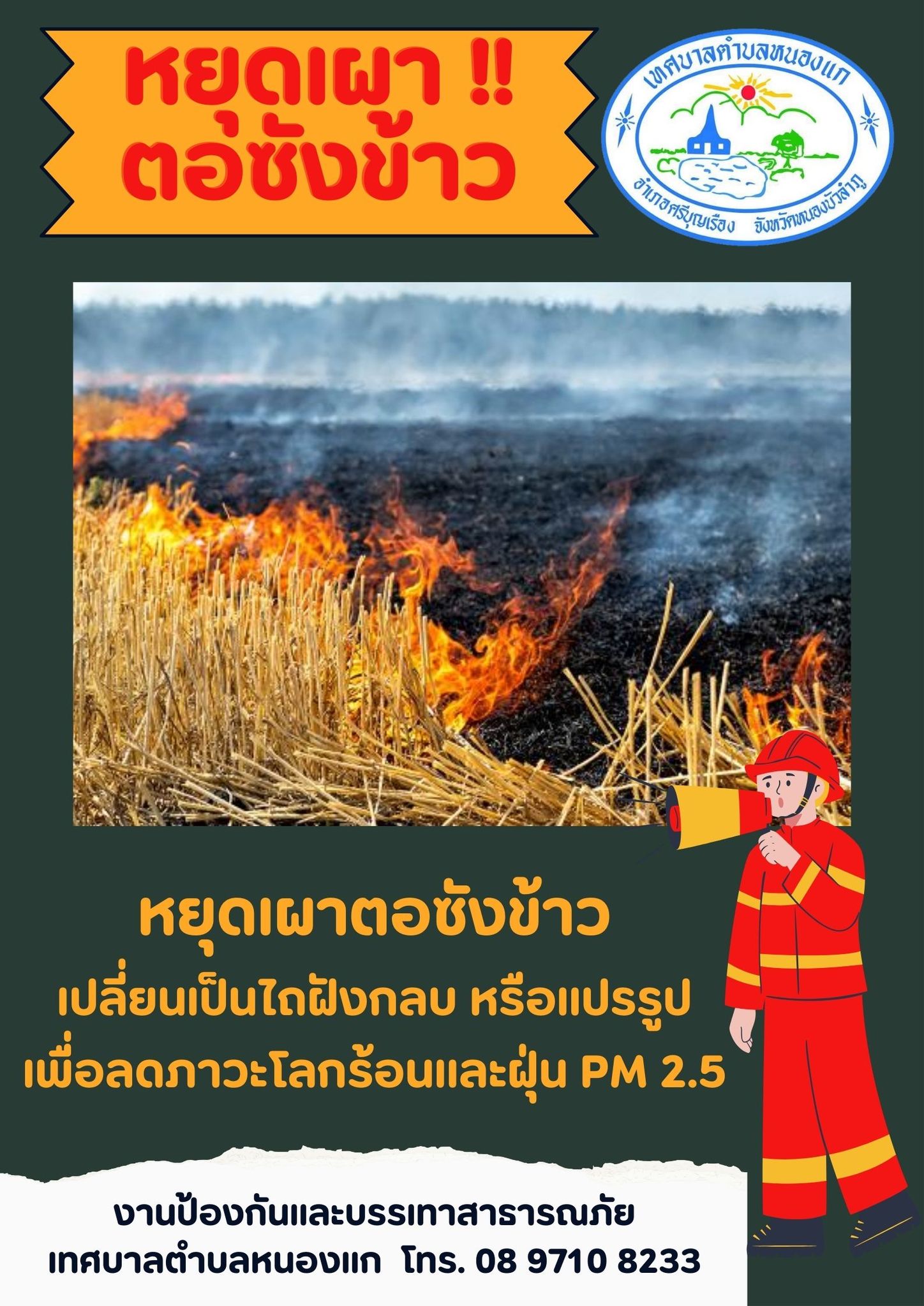 เทศบาลตำบลหนองแก ขอประชาสัมพันธ์ รณรงค์ งดเผาตอซังและฟางข้าว