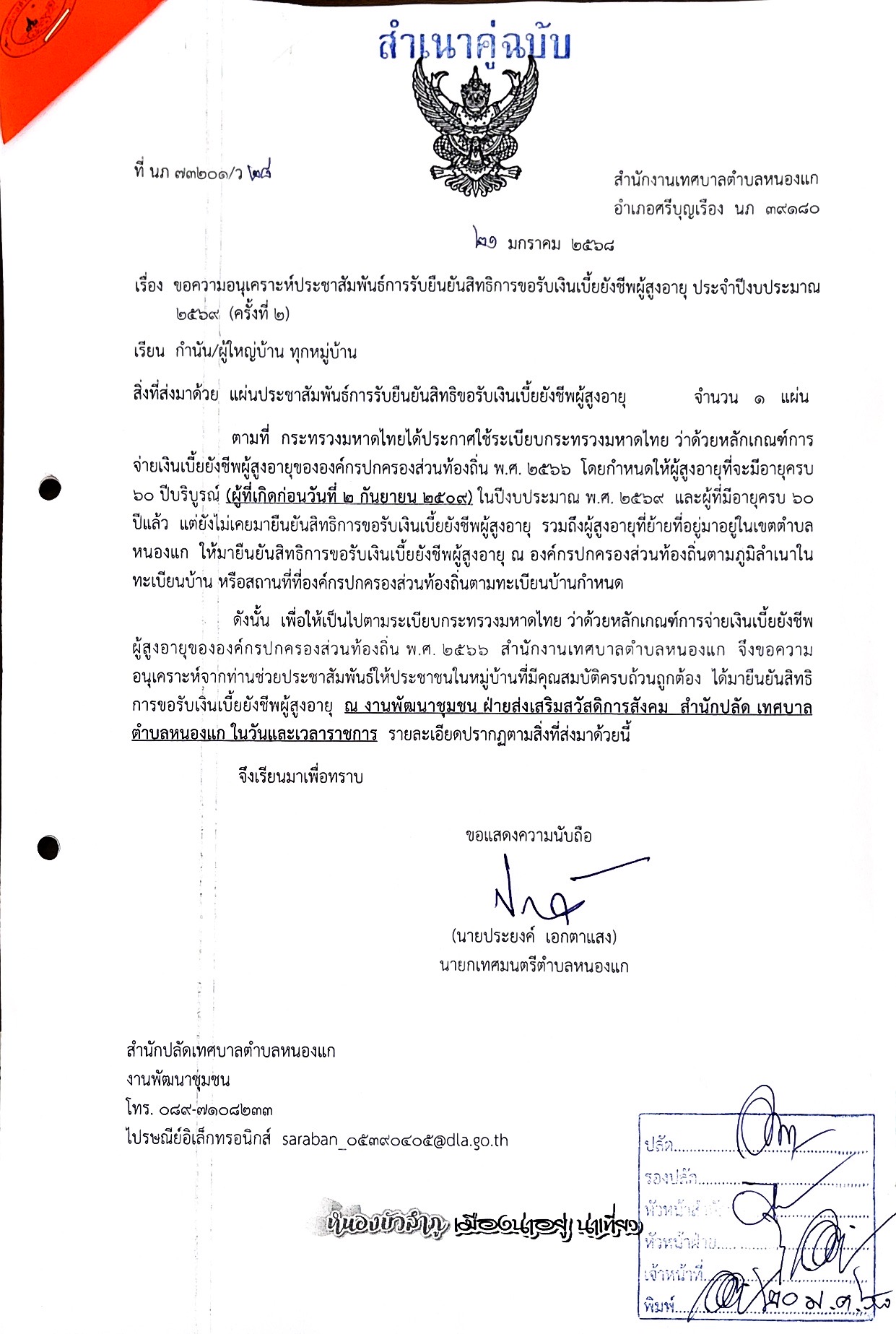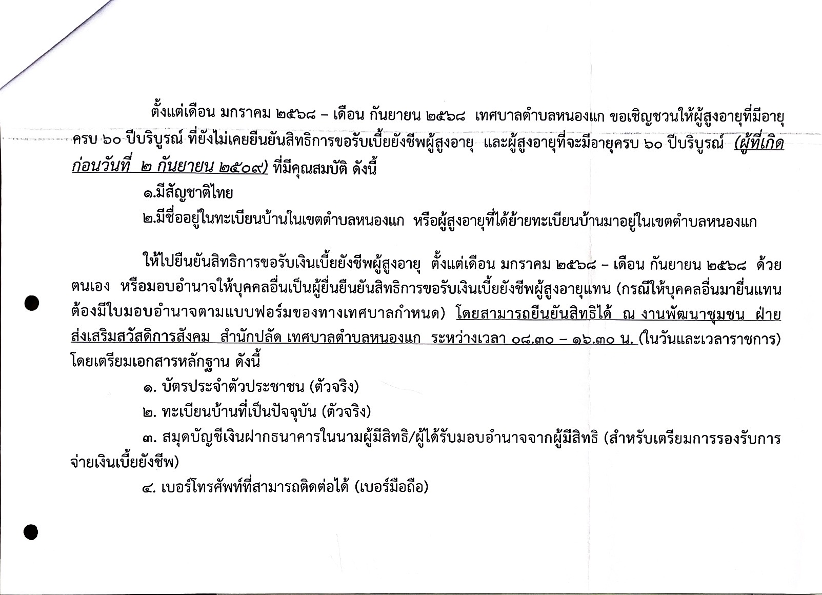 ประชาสัมพันธ์การรับยืนยันสิทธิการขอรับเงินเบี้ยยังชีพผู้สูงอายุ ประจำปีงบประมาณ 2569