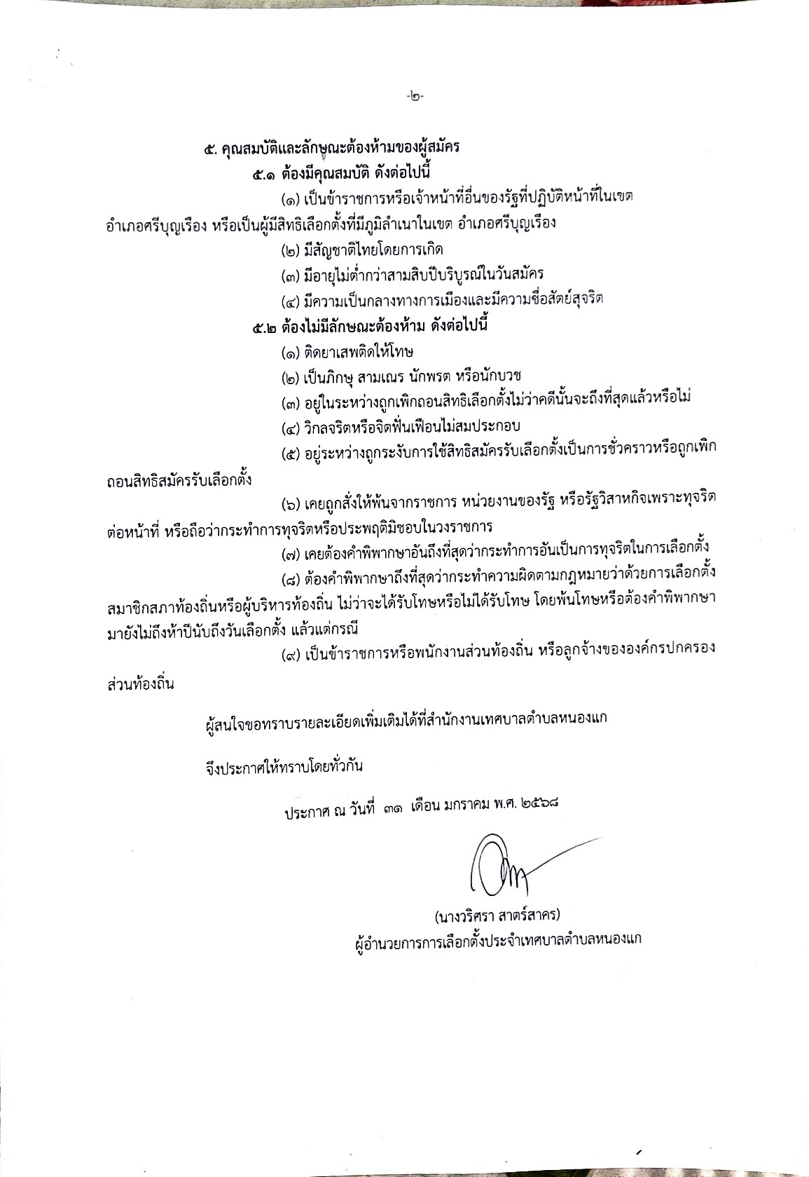 ประกาศผู้อำนวยการ การเลือกตั้งประจำเทศบาลตำบลหนองแก