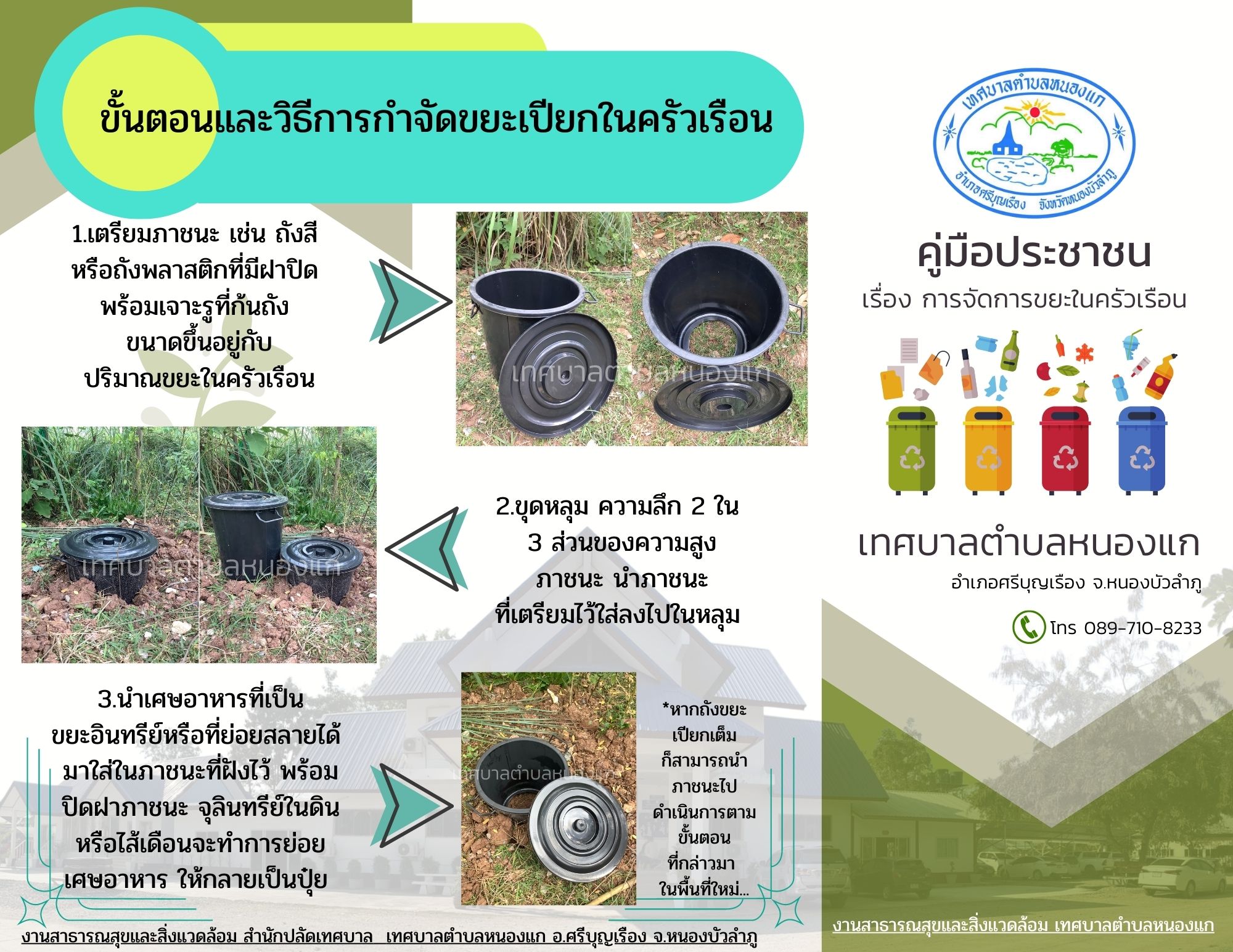 ประชาสัมพันธ์ เทศบาลตำบลหนองแก ขอเชิญชวนประชาชน ตำบลหนองแกทุกครัวเรือน ผู้ประกอบการจำหน่ายอาหาร วัด โรงเรียน ศูนย์พัฒนาเด็กเล็ก หน่วยงานราชการ จัดทำถังขยะเปียก ลดโลกร้อน |