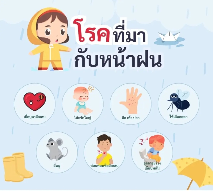 - โรคไข้เลือดออก มียุงลายเป็นหาพะ ชุกชุมและแพร่พันธุ์ได้อย่างรวดเร็วในช่วงฤดูฝน