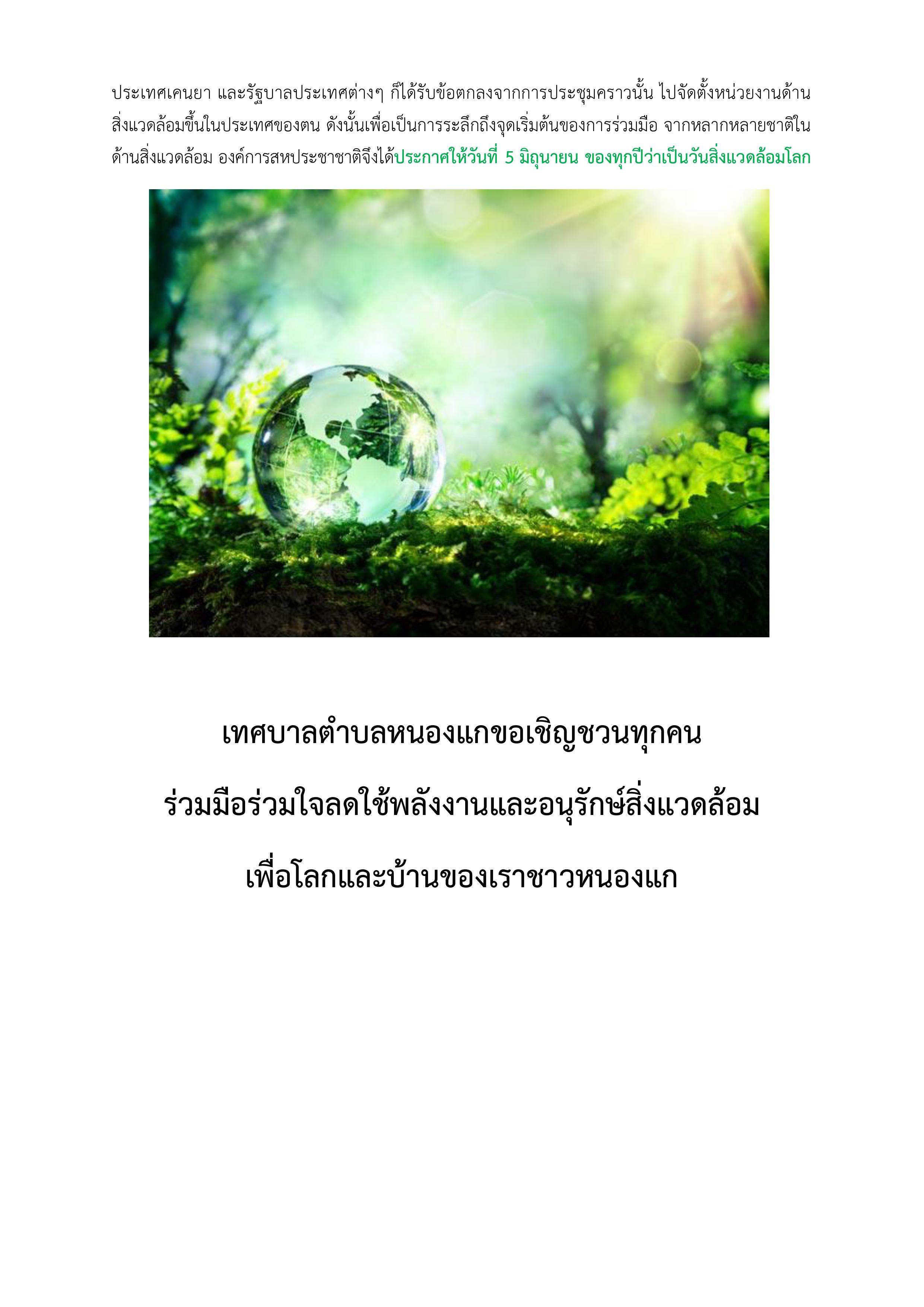 วันสิ่งแวดล้อมโลก 5 มิถุนายน