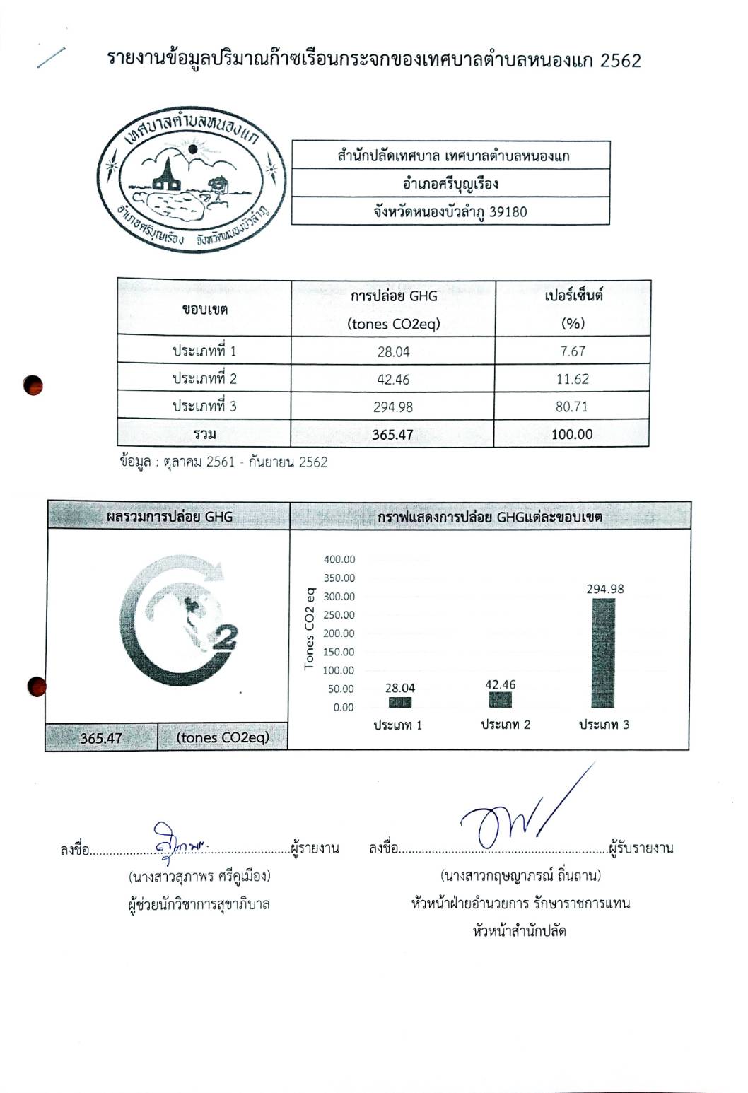 รายงานข้อมูลปริมาณก๊าซเรือนกระจกของเทศบาลตำบลหนองแก ปี 2562