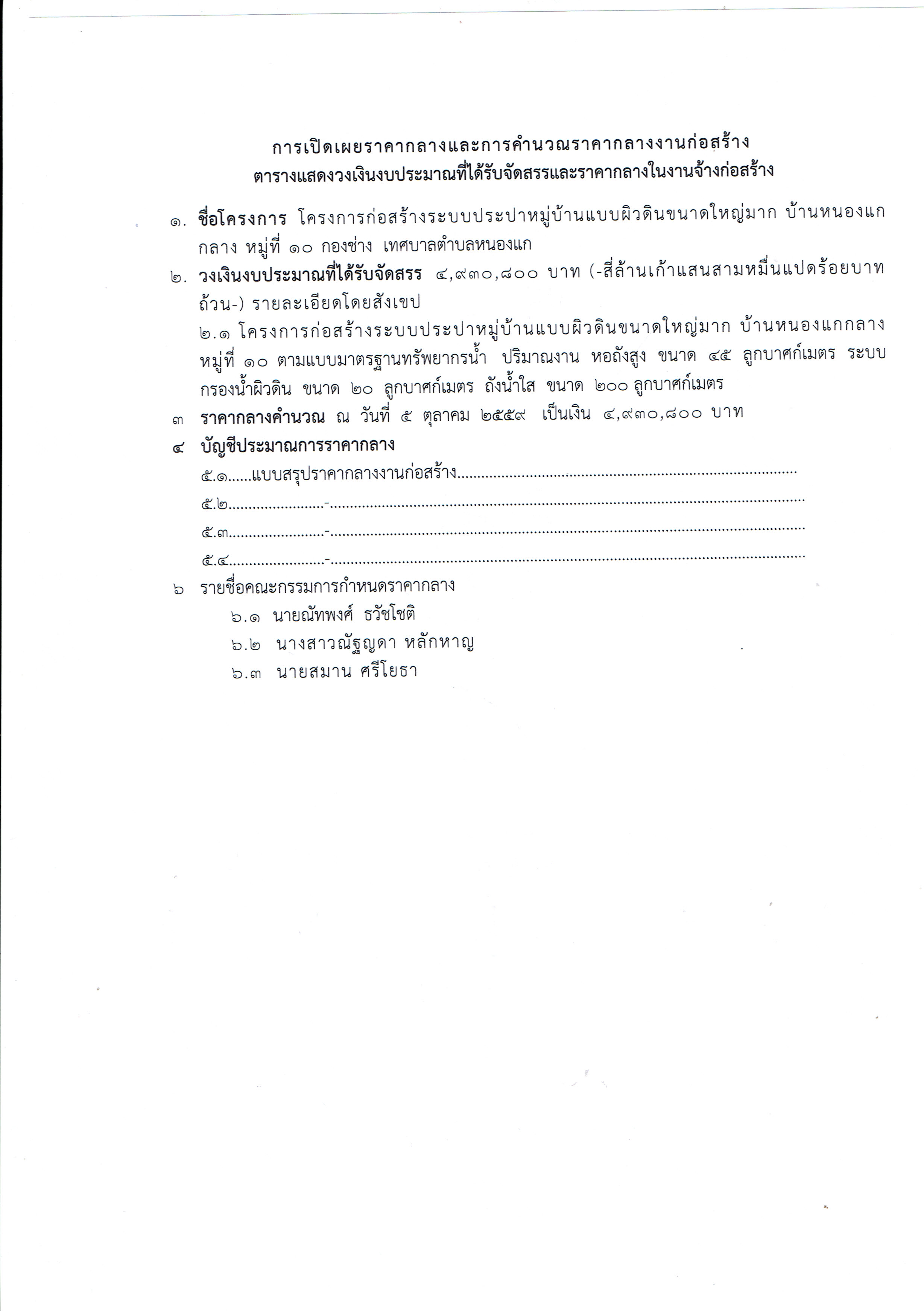 ราคากลางโครงการก่อสร้างระบบประปาหมู่บ้านผิวดินขนาดใหญ่มาก บ้านหนองแกกลาง หมู่ที่ 10