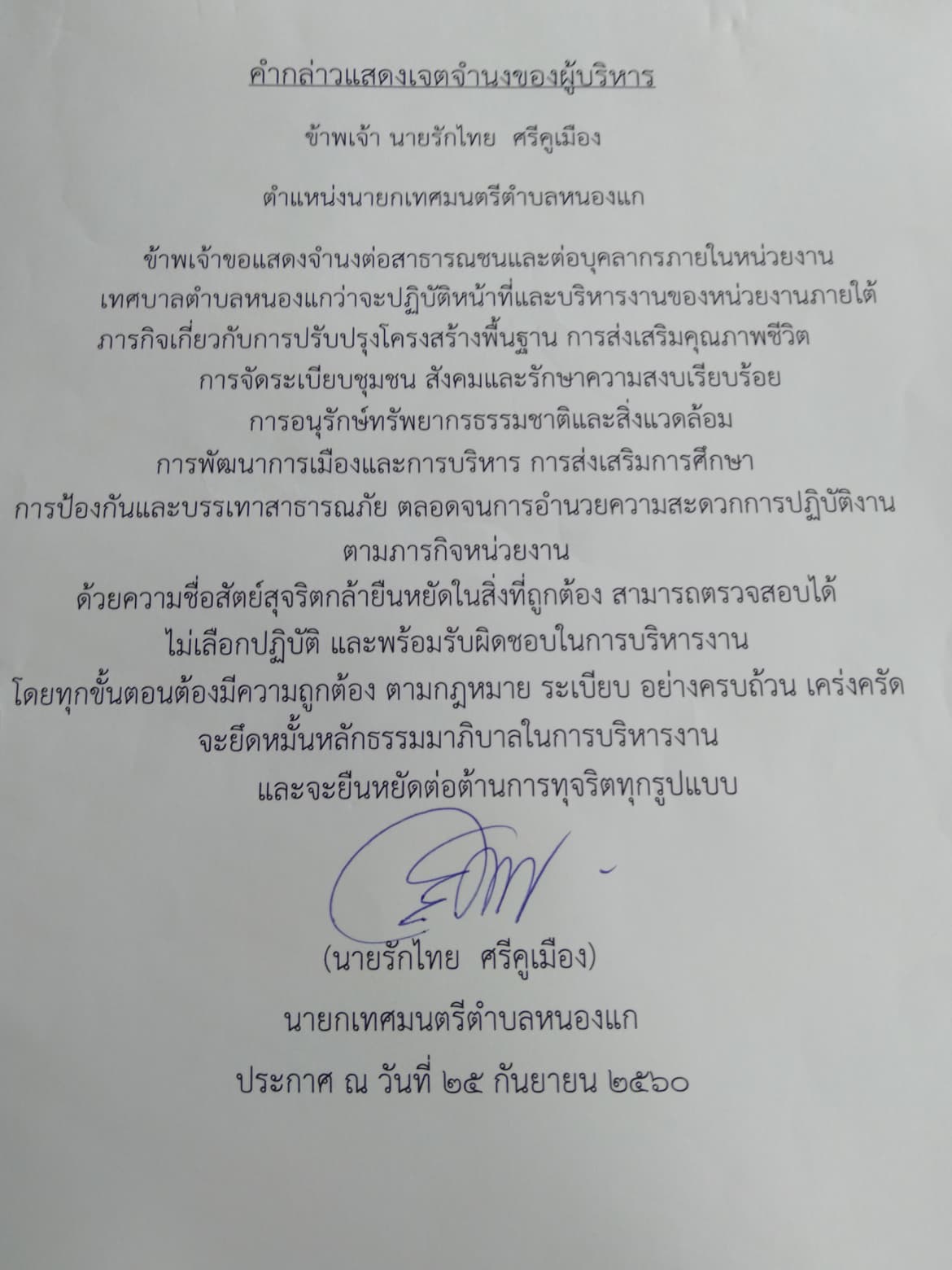 คำกล่าวแสดงเจตจำนงของผู้บริหาร