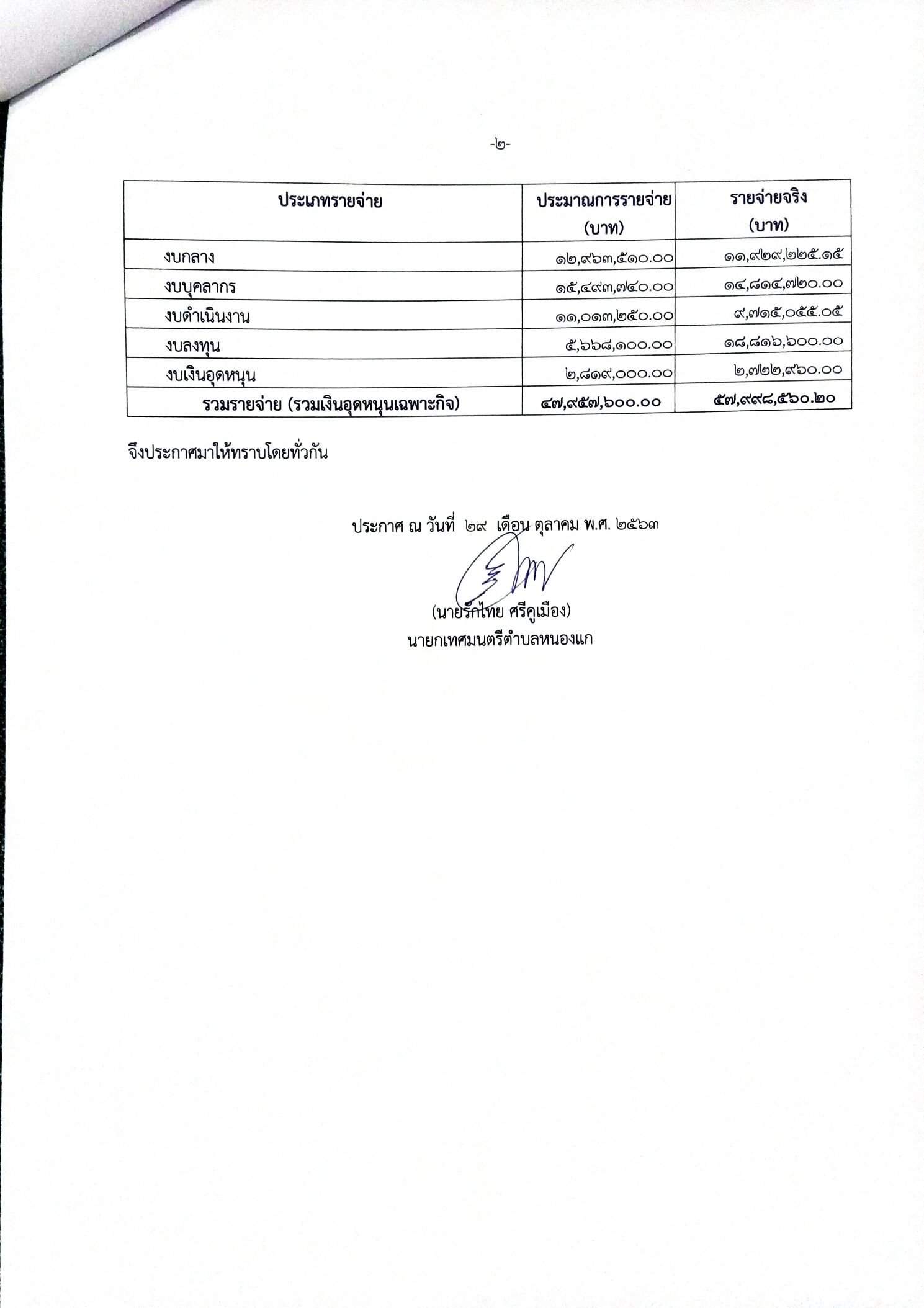 ประกาศบาลตำบลหนองแก